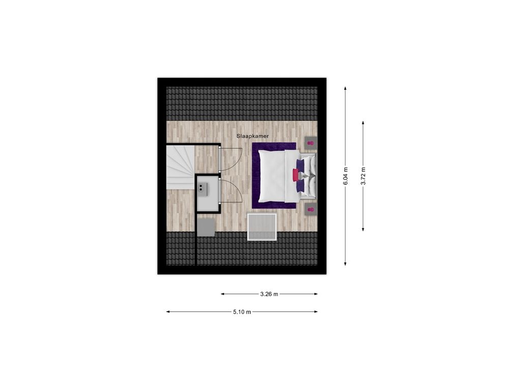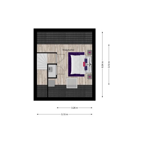 Overloop met opstelling van de cv-ketel en mechanische ventilatie-unit (in een aparte kast). Daarnaast bevindt zich hier de vierde slaapkamer met dakraam en aansluiting voor de wasmachine. Tevens de omvormer voor de 6 zonnepanelen op het dak.