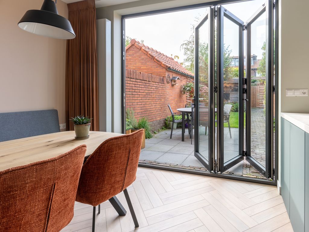 Stap binnen in de lichte, sfeervolle doorzonwoonkamer met erker, houtkachel én openslaande harmonica deuren naar de zonnige tuin. De moderne keuken met schiereiland en luxe inbouwapparatuur nodigt uit tot koken, borrelen en bijpraten – of je nu alleen woont of een druk gezinsleven hebt. Op de verdiepingen vind je in totaal 4 slaapkamers, ideaal voor slapen, werken of logeren. De recent vernieuwde badkamer is een echte eyecatcher: stijlvol, compleet met ligbad, inloopdouche én een tweede toilet.