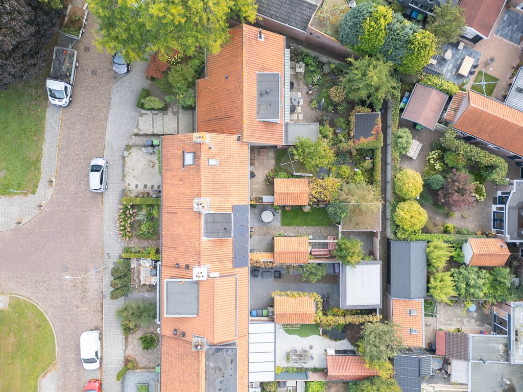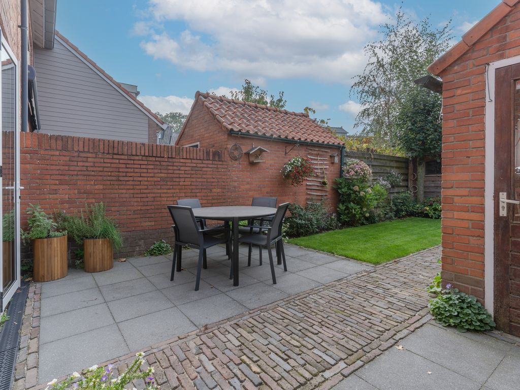 De fraai aangelegde tuin op het zonnige zuiden is jouw eigen stukje rust. Meerdere terrassen, een gazon, groene borders, twee bergingen én een achterom maken het plaatje compleet. Of je nu wakker wordt met een kop koffie in de ochtendzon of ’s avonds gezellig barbecuet met vrienden – hier voelt het altijd als thuiskomen.