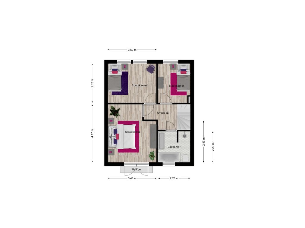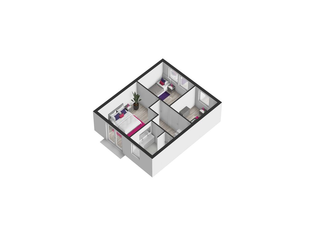 overloop, 3 slaapkamers (1 slaapkamer met balkon) en een moderne badkamer voorzien van inloopdouche, ligbad, wastafel en tweede toilet.