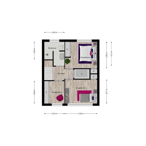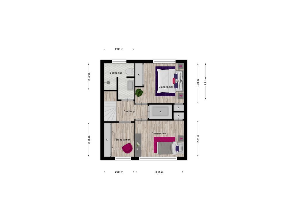 overloop, 3 slaapkamers (met verschillende vaste kasten) en een nette badkamer voorzien van inloopdouche, wastafelmeubel en 2e toilet.