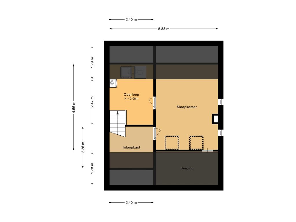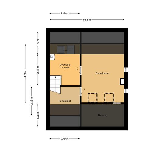 Vaste trap naar de zolderverdieping met overloop, opstelplaats voor de HR-ketel en een comfortabele zolderkamer met inloopkast.