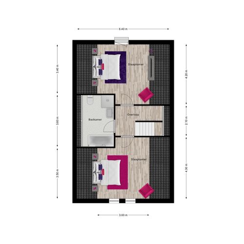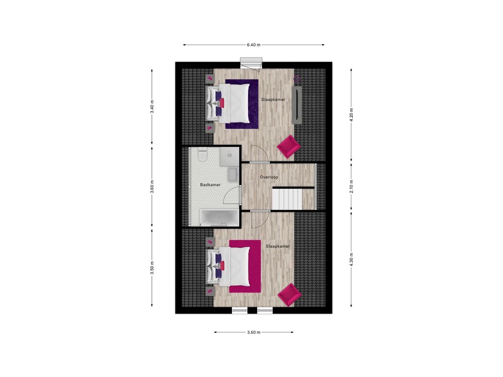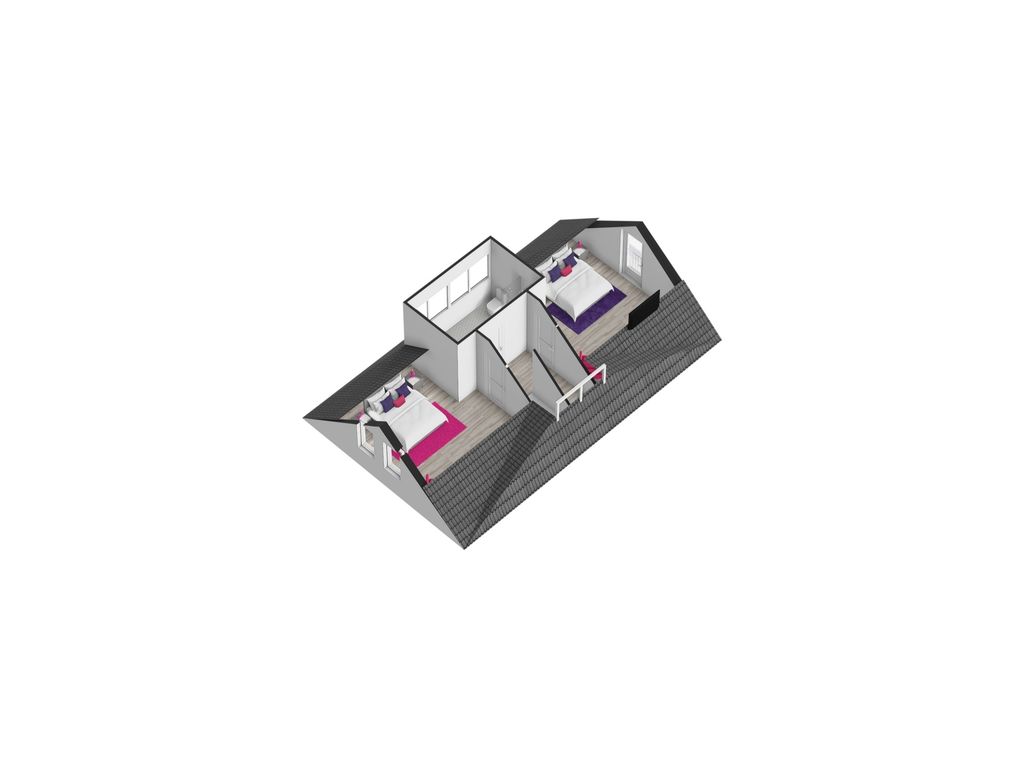 overloop, 2 slaapkamers (waarvan 1 met Frans balkon) met bergruimte in de knieschotten en een riante badkamer voorzien van douche, ligbad, toilet en wastafelmeubel.