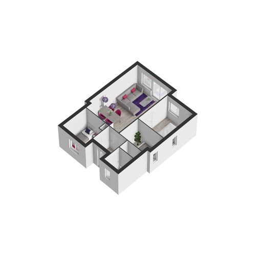 hal, moderne badkamer met inloopdouche en wastafelmeubel, afzonderlijk toilet, 1 slaapkamer met stapelbed, 1 multifunctionele ruimte welke te gebruiken is als slaapkamer of berging. Gezellige woonkamer met nette open keuken en toegang tot de ouderslaapkamer. Via een schuifpui kom je in de tuin.