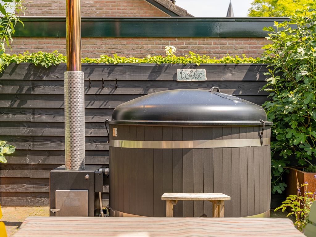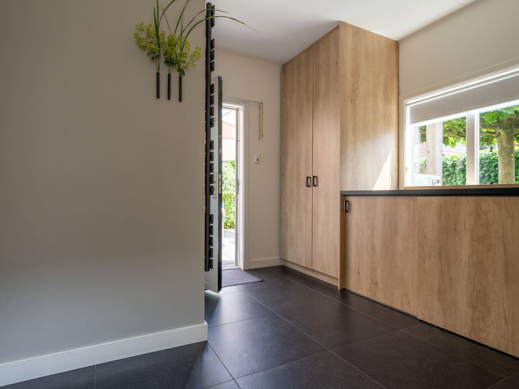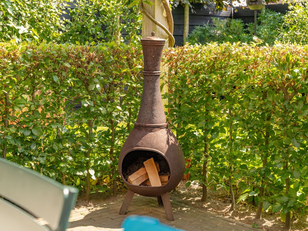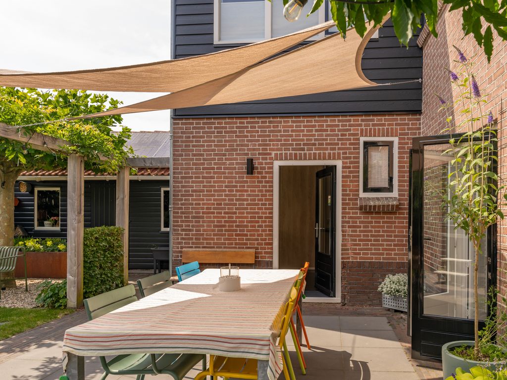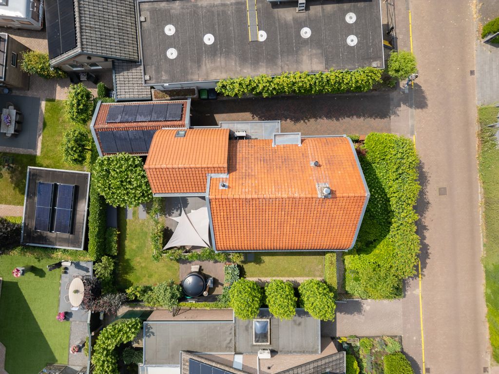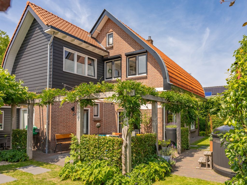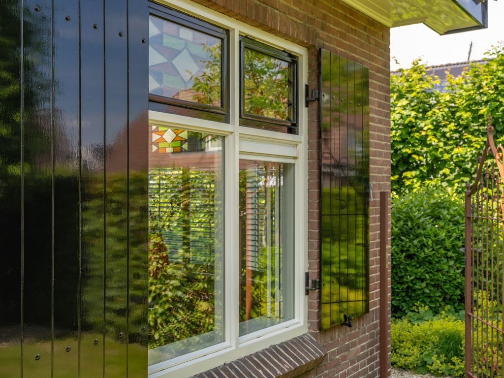 De ruime, onder architectuur aangelegde tuin op het zuiden biedt veel privacy en vormt een oase van rust. Cortenstaal  accenten, sfeervolle verlichting , automatische beregening en een sedum dak op de houtopslag zorgen voor een verzorgde, luxe uitstraling. De voortuin met karakteristiek toegangshek en hardstenen trap maakt het geheel compleet. De ruime oprit biedt plaats aan drie auto’s en op de grote schuur met zolder bevinden zich negen zonnepanelen. Al het houtwerk is recent geschilderd; zinken goten, luiken en regenwateropvangsystemen versterken de duurzame kwaliteit van dit huis.