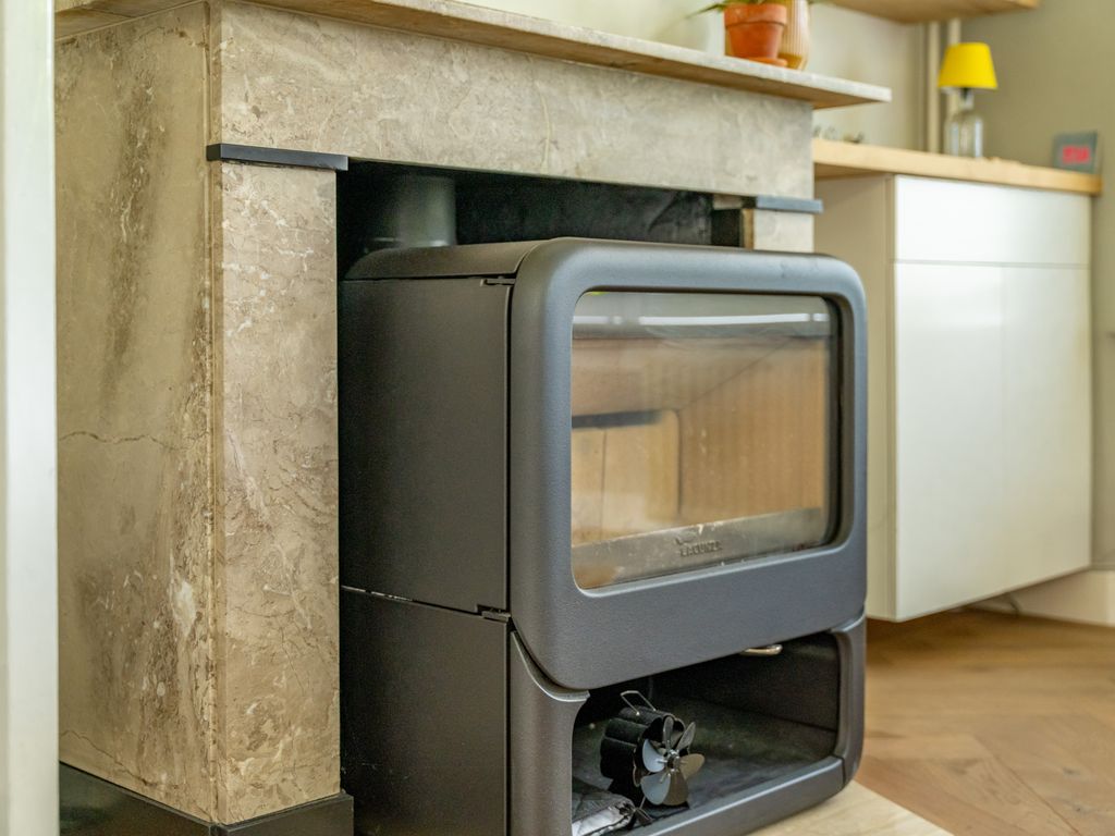 Authentieke kamer-en-suite met visgraatvloer, marmeren schouw en houtkachel