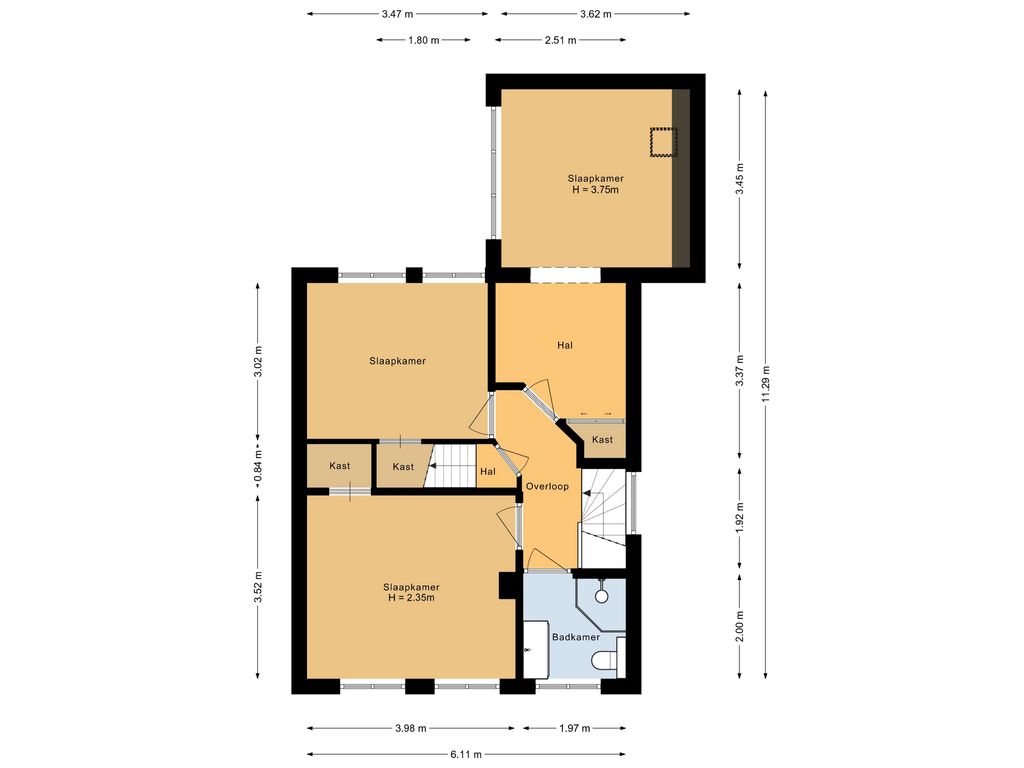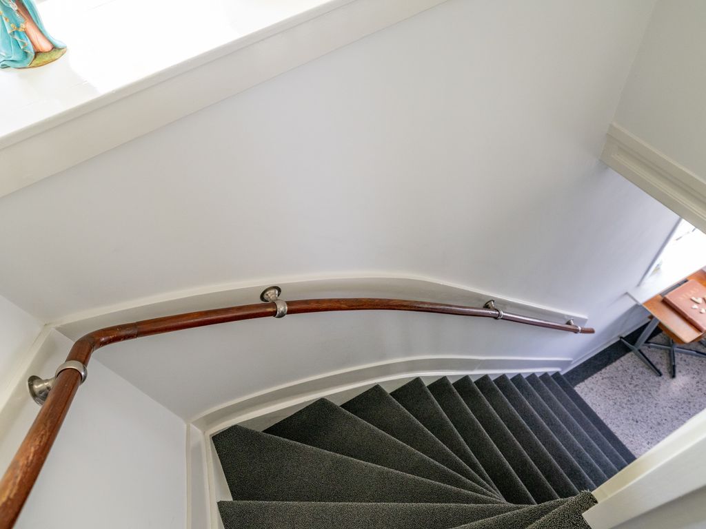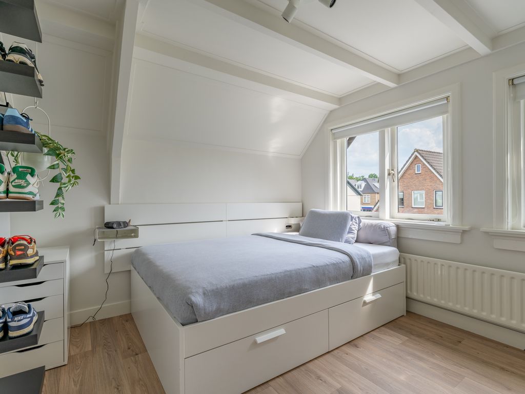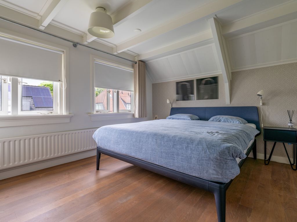 De eerste verdieping biedt drie ruime slaapkamers, elk met inbouwkasten en prachtige lichtinval. Eén kamer is voorzien van airconditioning (koelen én verwarmen), en de slaapkamer aan de achterzijde heeft isolerende zonwering op zonne-energie. De badkamer is in 2024 volledig vernieuwd en uitgevoerd met vloerverwarming, een stortdouche en tweede toilet – stijlvol, modern en comfortabel. Een vaste trap leidt naar de tweede verdieping onder het karakteristieke ronde dak, waar zich een sfeervolle, geïsoleerde ruimte bevindt. Ideaal als werkplek, logeer- of hobbykamer.