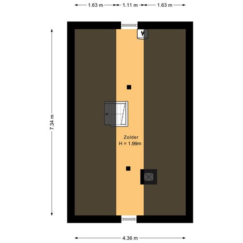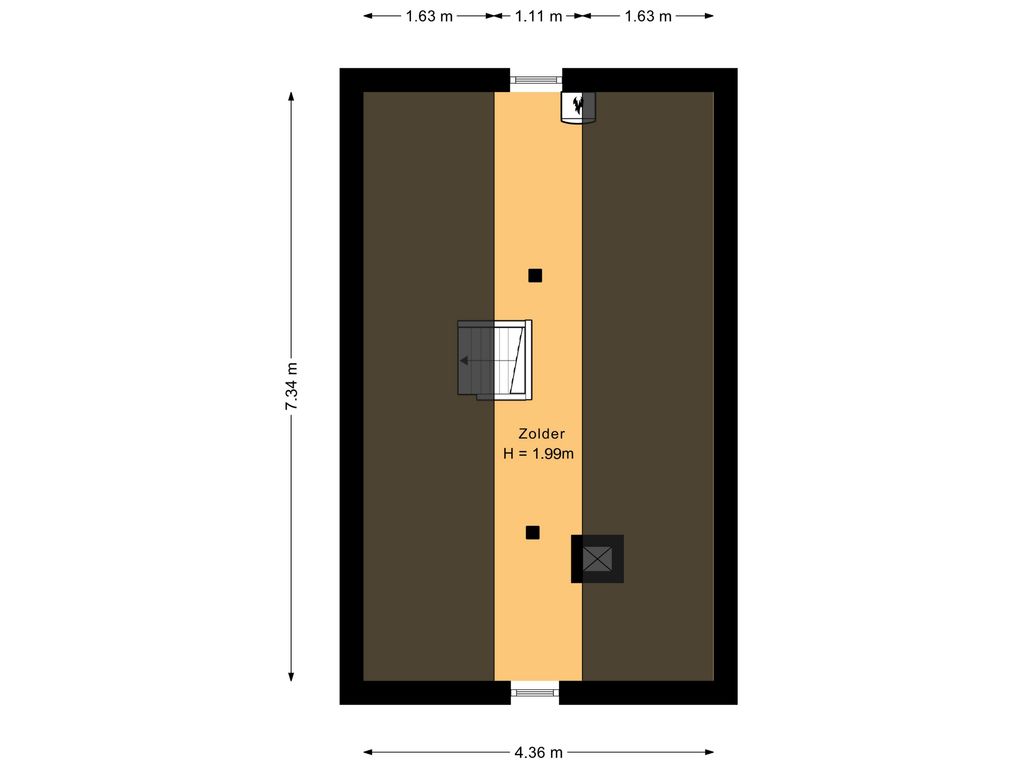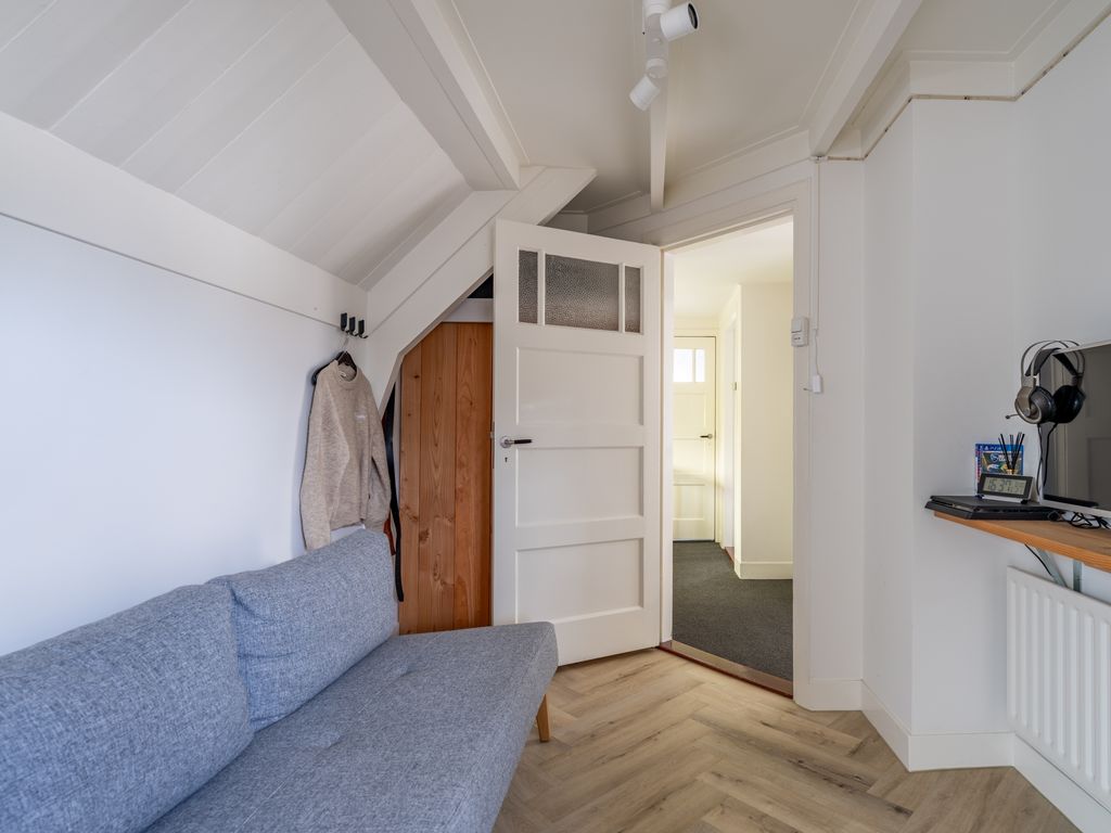 Ruime zolderverdieping, thans in gebruik als werkplek en bereikbaar via een vaste trap.