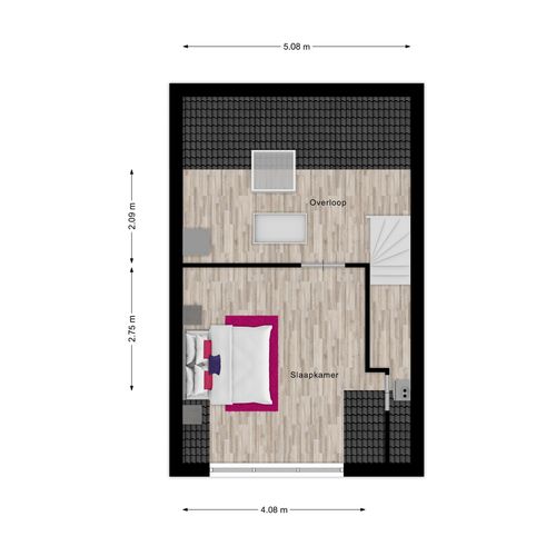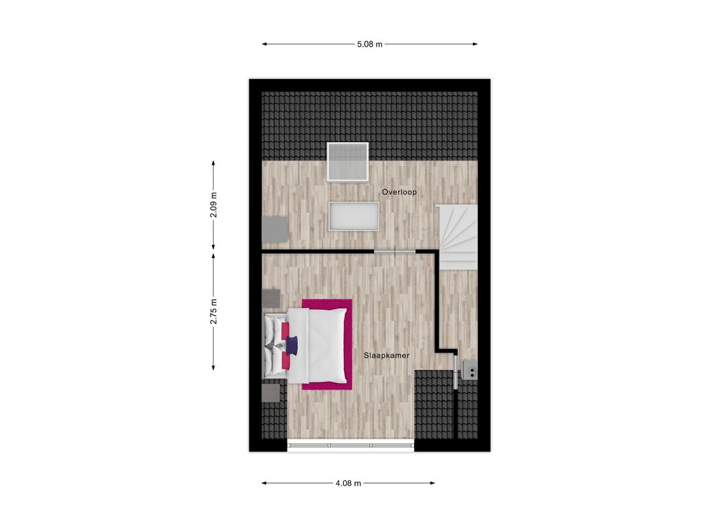En dan de zolder: dankzij de dakkapel aan de voorzijde is hier een verrassend ruime extra slaapkamer ontstaan. De voorzolder biedt bovendien een praktische plek voor de wasapparatuur én extra opbergruimte.