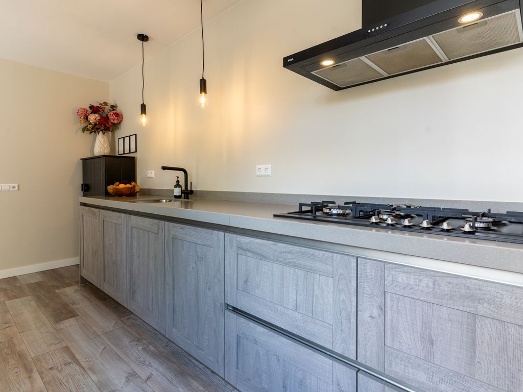 hal met trapkast, vernieuwd toilet, L-vormige woonkamer met prachtige keuken en aangrenzend nog een handige bijkeuken waar de wasapparatuur staat.